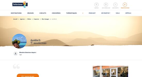 Aurélie D agent de voyages de l’agence Bleu Voyages à CRAPONNE Réinitialisation du mot de passe Accueil > Agences > Rhône > Craponne > Bleu Voyages > Aurélie D. Aurélie D. Agence Bleu Voyages Membre Selectour depuis : 1 an CONTACTEZ-MOI 91, place Andrée Marie Perrin 69290, CRAPONNE 04 78 44 74 74 Lundi : Fermé Mardi : 09:30 - 12:15 , 14:00 - 18:30